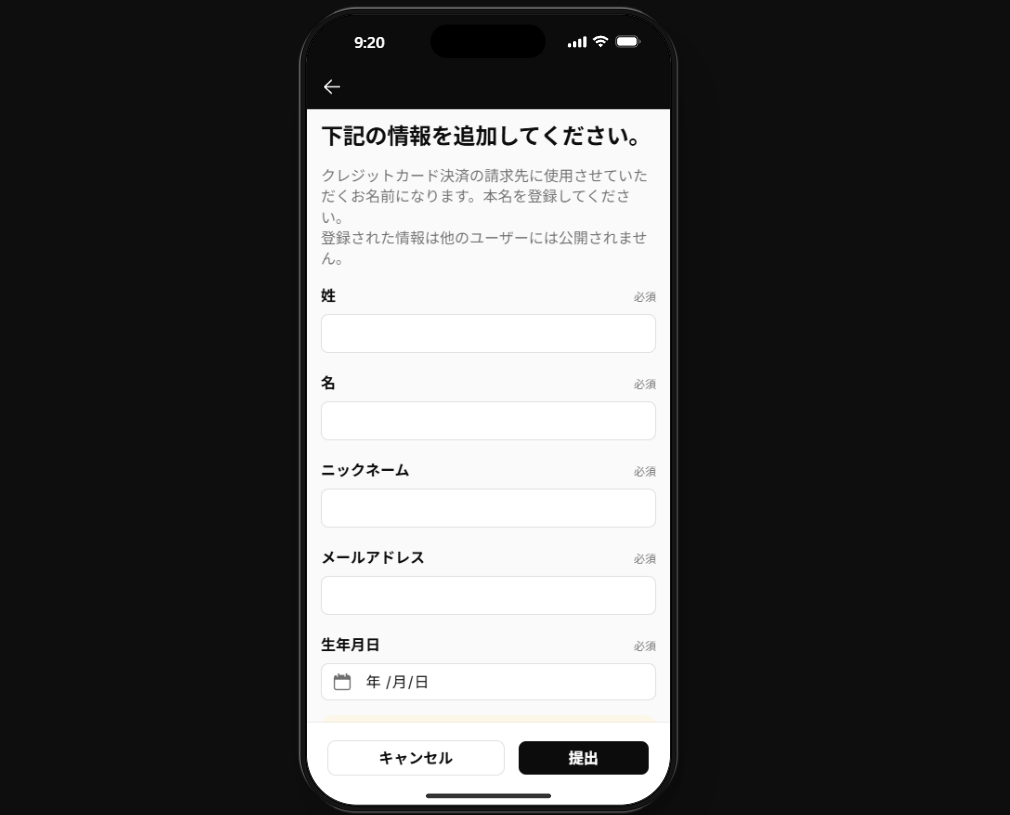 コードを入力後、ご自身のプロフィールを作成してください。