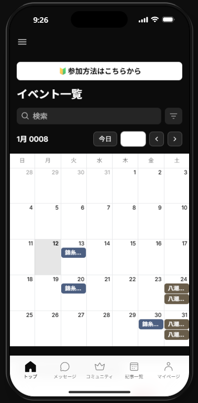 公開されている開催日程より、参加したいイベントを選択してください。
